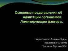 Основные представления об адаптации организмов Лимитирующие факторы Подготовила