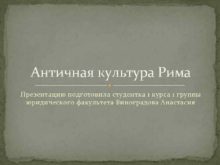 Античная культура Рима Презентацию подготовила студентка 1 курса