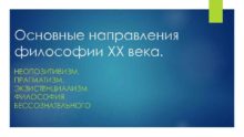 Основные направления философии XX века НЕОПОЗИТИВИЗМ ПРАГМАТИЗМ ЭКЗИСТЕНЦИАЛИЗМ