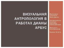 ВИЗУАЛЬНАЯ АНТРОПОЛОГИЯ В РАБОТАХ ДИАНЫ АРБУС Выполнила студентка