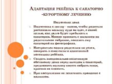 АДАПТАЦИЯ РЕБЁНКА К САНАТОРНО -КУРОРТНОМУ ЛЕЧЕНИЮ Подготовка дома