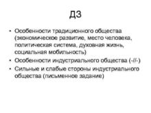 ДЗ Особенности традиционного общества экономическое развитие место