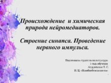 Происхождение и химическая природа нейромедиаторов Строение синапса Проведение