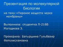 Презентация по молекулярной биологии на тему Перенос веществ