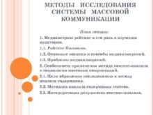 МЕТОДЫ ИССЛЕДОВАНИЯ СИСТЕМЫ МАССОВОЙ КОММУНИКАЦИИ План лекции 1
