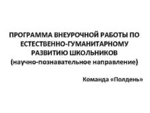 ПРОГРАММА ВНЕУРОЧНОЙ РАБОТЫ ПО ЕСТЕСТВЕННО-ГУМАНИТАРНОМУ РАЗВИТИЮ ШКОЛЬНИКОВ научно-познавательное