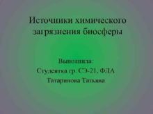 Источники химического загрязнения биосферы Выполнила Студентка гр СЭ-21