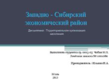 Западно — Сибирский экономический район Дисциплина Территориальная