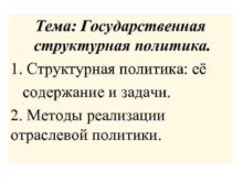 Тема Государственная структурная политика 1 Структурная политика её