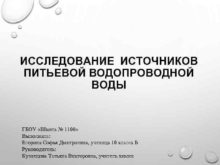 ИССЛЕДОВАНИЕ ИСТОЧНИКОВ ПИТЬЕВОЙ ВОДОПРОВОДНОЙ ВОДЫ ГБОУ Школа