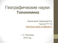 Географические науки Топонимика Выполнила Смирнова М А Группа