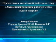 Презентация дипломной работы на тему Автоматизированное рабочее место