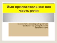 Имя прилагательное как часть речи Грамматические характеристики Особенности