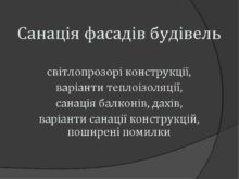 Санація фасадів будівель світлопрозорі конструкції варіанти теплоізоляції санація