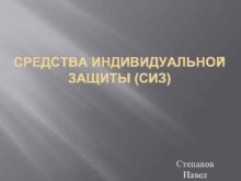 СРЕДСТВА ИНДИВИДУАЛЬНОЙ ЗАЩИТЫ СИЗ Степанов Павел Классификация