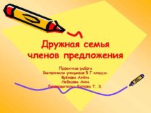 Дружная семья членов предложения Проектная работа Выполнили учащиеся