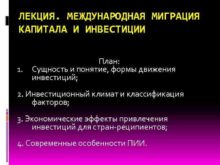 ЛЕКЦИЯ МЕЖДУНАРОДНАЯ МИГРАЦИЯ КАПИТАЛА И ИНВЕСТИЦИИ 1 План
