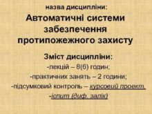 назва дисципліни Автоматичні системи забезпечення протипожежного захисту Зміст