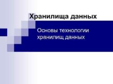 Хранилища данных Основы технологии хранилищ данных Технология