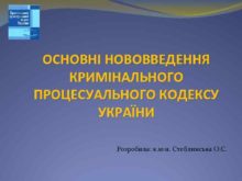 ОСНОВНІ НОВОВВЕДЕННЯ КРИМІНАЛЬНОГО ПРОЦЕСУАЛЬНОГО КОДЕКСУ УКРАЇНИ Розробила к