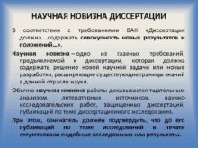 НАУЧНАЯ НОВИЗНА ДИССЕРТАЦИИ В соответствии с требованиями ВАК