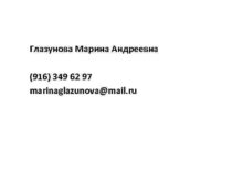 Глазунова Марина Андреевна 916 349 62 97 marinaglazunova mail