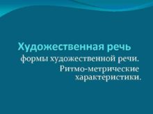 Художественная речь формы художественной речи Ритмо-метрические характеристики