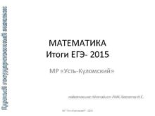 Единый государственный экзамен МАТЕМАТИКА Итоги ЕГЭ- 2015 МР