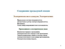 Cодержание предыдущей лекции Электрическое поле в вакууме Электростатика