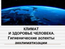 КЛИМАТ И ЗДОРОВЬЕ ЧЕЛОВЕКА Гигиенические аспекты акклиматизации