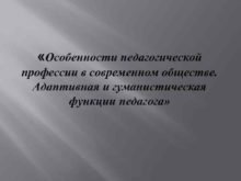 Особенности педагогической профессии в современном обществе Адаптивная
