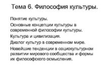 Тема 6 Философия культуры Понятие культуры Основные концепции