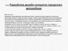 тема Разработка дизайн-концепта городского автомобиля Концепция Автомобиль предусматривает