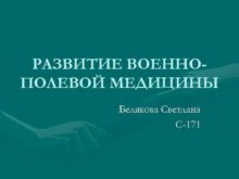 РАЗВИТИЕ ВОЕННОПОЛЕВОЙ МЕДИЦИНЫ Белякова Светлана С-171 Первый