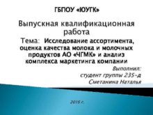 ГБПОУ ЮУГК Выпускная квалификационная работа Тема Исследование ассортимента