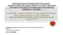 МЕТОДИКА ПОДГОТОВКИ СОЦИАЛЬНО ЗНАЧИМЫХ ПРОЕКТОВ ПО ВОПРОСАМ РАЗВИТИЯ
