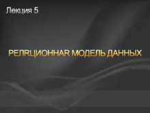 Лекция 5 РЕЛЯЦИОННАЯ МОДЕЛЬ ДАННЫХ Содержание 5