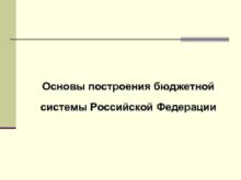 Основы построения бюджетной системы Российской Федерации Бюджетный