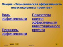 Лекция Экономическая эффективность инвестиционных проектов Виды эффективности Принципы