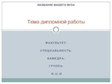 НАЗВАНИЕ ВАШЕГО ВУЗА Тема дипломной работы ФАКУЛЬТЕТ СПЕЦИАЛЬНОСТЬ