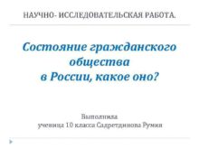 НАУЧНО- ИССЛЕДОВАТЕЛЬСКАЯ РАБОТА Состояние гражданского общества в России