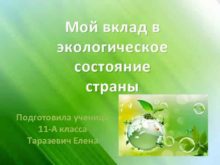 Мой вклад в экологическое состояние страны Подготовила ученица