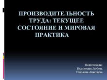 ПРОИЗВОДИТЕЛЬНОСТЬ ТРУДА ТЕКУЩЕЕ СОСТОЯНИЕ И МИРОВАЯ ПРАКТИКА Подготовили