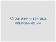 Стратегии и тактики коммуникации ПОНЯТИЕ КОММУНИКАЦИОННОЙ СТРАТЕГИИ