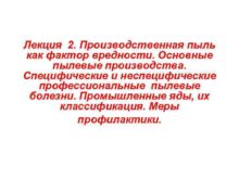 Лекция 2 Производственная пыль как фактор вредности Основные