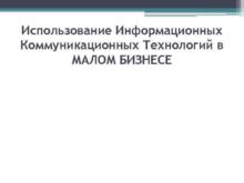 Использование Информационных Коммуникационных Технологий в МАЛОМ БИЗНЕСЕ