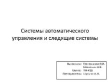 Системы автоматического управления и следящие системы Выполнили Трапезникова
