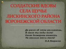 СОЛДАТСКИЕ ВДОВЫ СЕЛА ЩУЧЬЕ ЛИСКИНСКОГО РАЙОНА ВОРОНЕЖСКОЙ ОБЛАСТИ