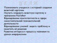 Познакомить учащихся с историей создания визитной карточки Научить