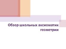 Обзор школьных аксиоматик геометрии Обзор аксиоматик школьных